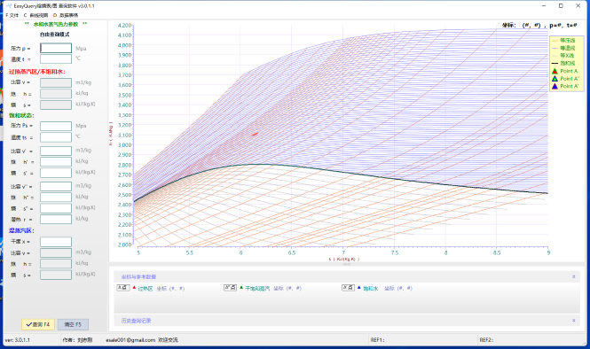 功能:水和水蒸氣熱力性質(zhì)參數(shù)查詢!提供焓熵圖繪制,焓熵表查詢!