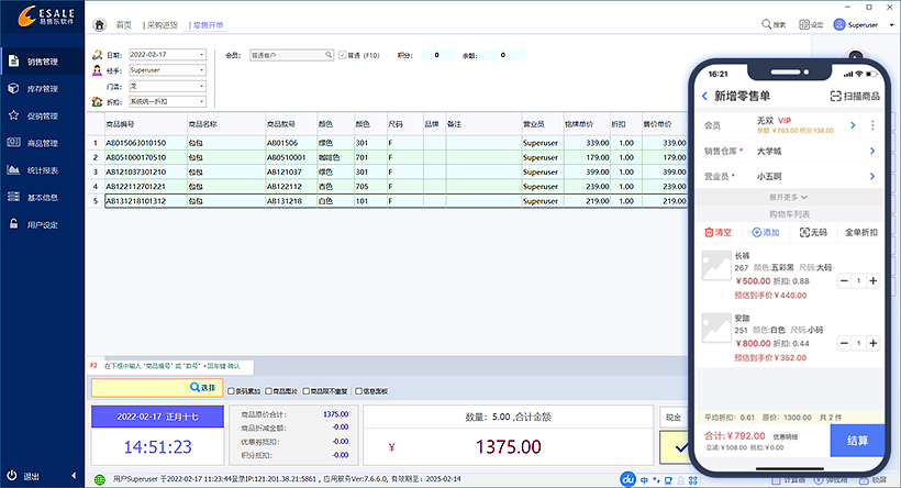 采購進(jìn)貨、收銀開單、會(huì)員管理、庫存調(diào)撥、盤點(diǎn)等功能應(yīng)有盡有,滿足店鋪日常管理需求