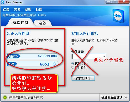3.發送遠程ID和密碼給我們,等待被遠程連接。